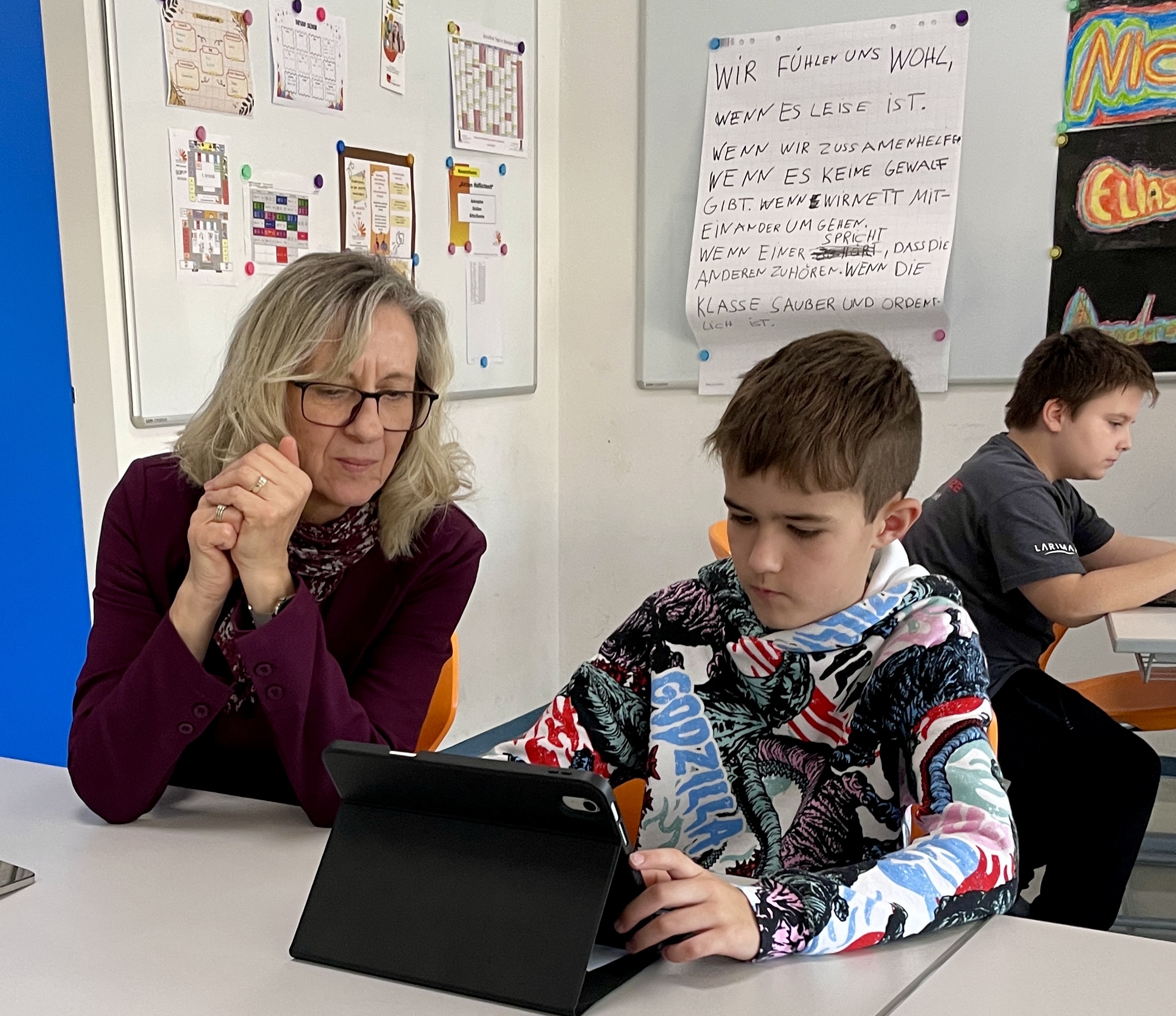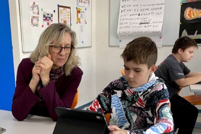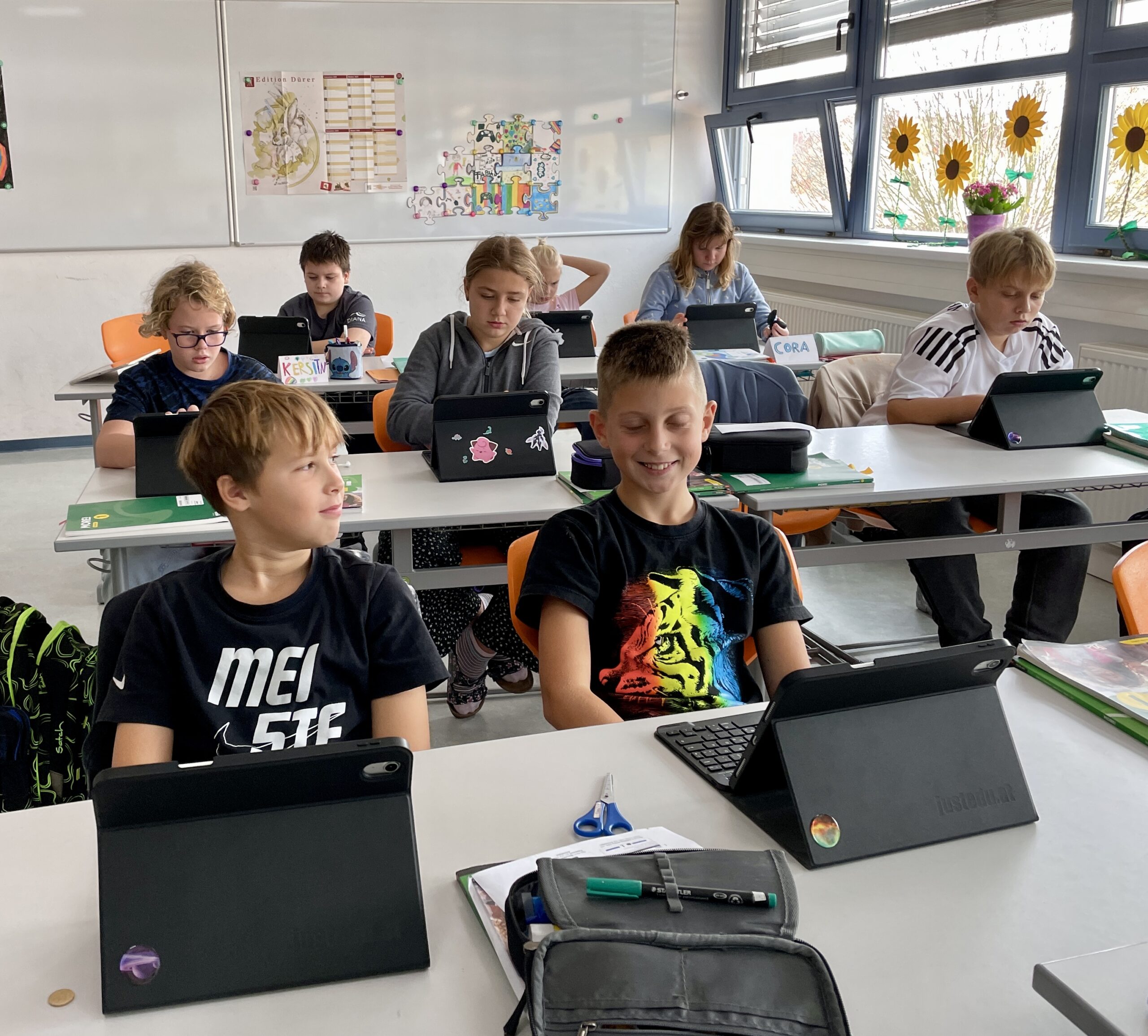 Darüber hinaus erkundete die Klasse weitere wichtige Programme wie Cyberhomework und mehrere schulspezifische Apps, die ihnen das Lernen und Organisieren erleichtern sollen. Die Jugendlichen konnten ausprobieren, Fragen stellen und ihre neuen digitalen Arbeitsgeräte direkt in der Praxis erleben.